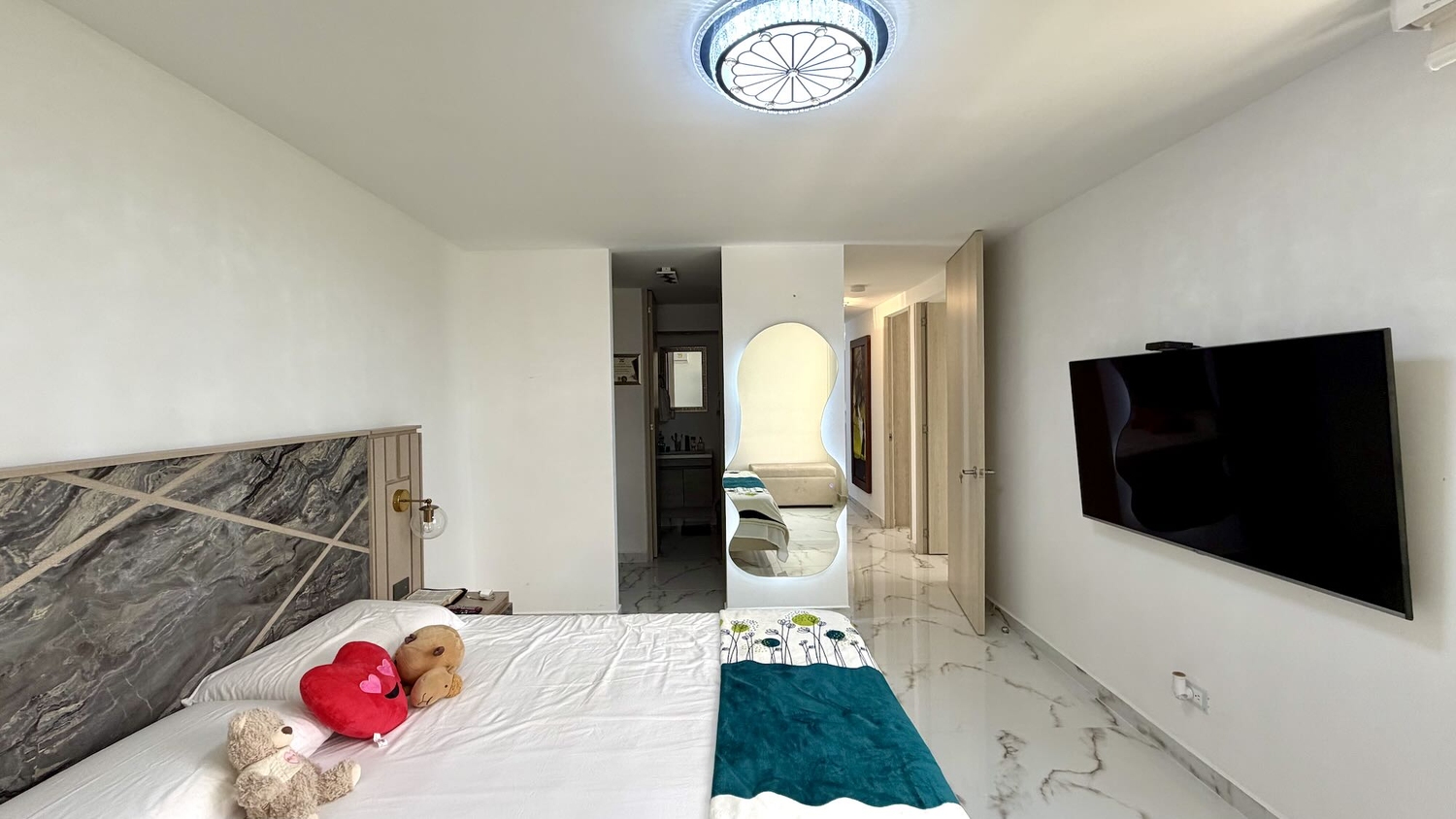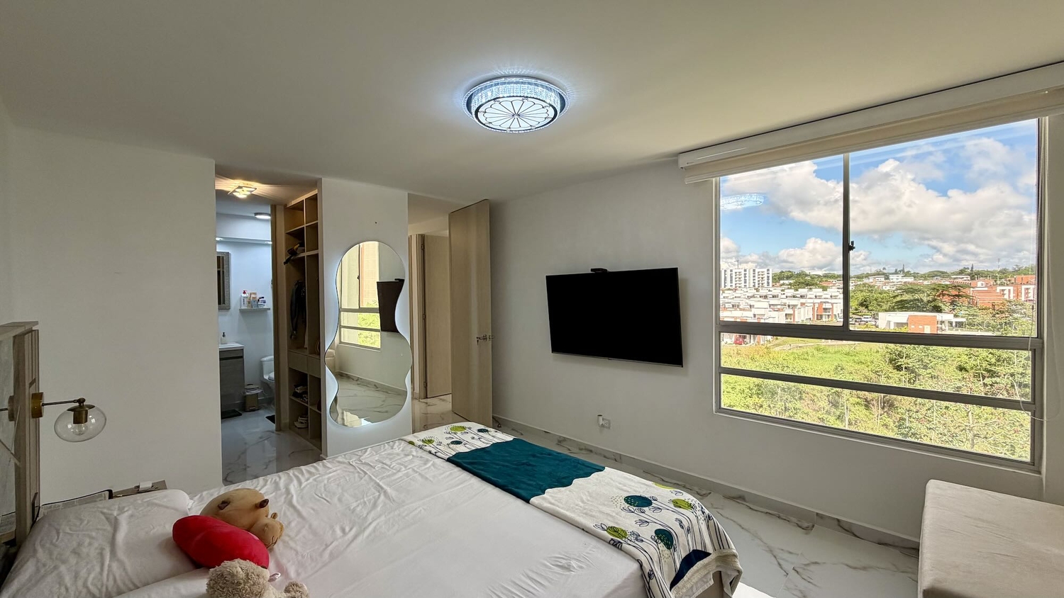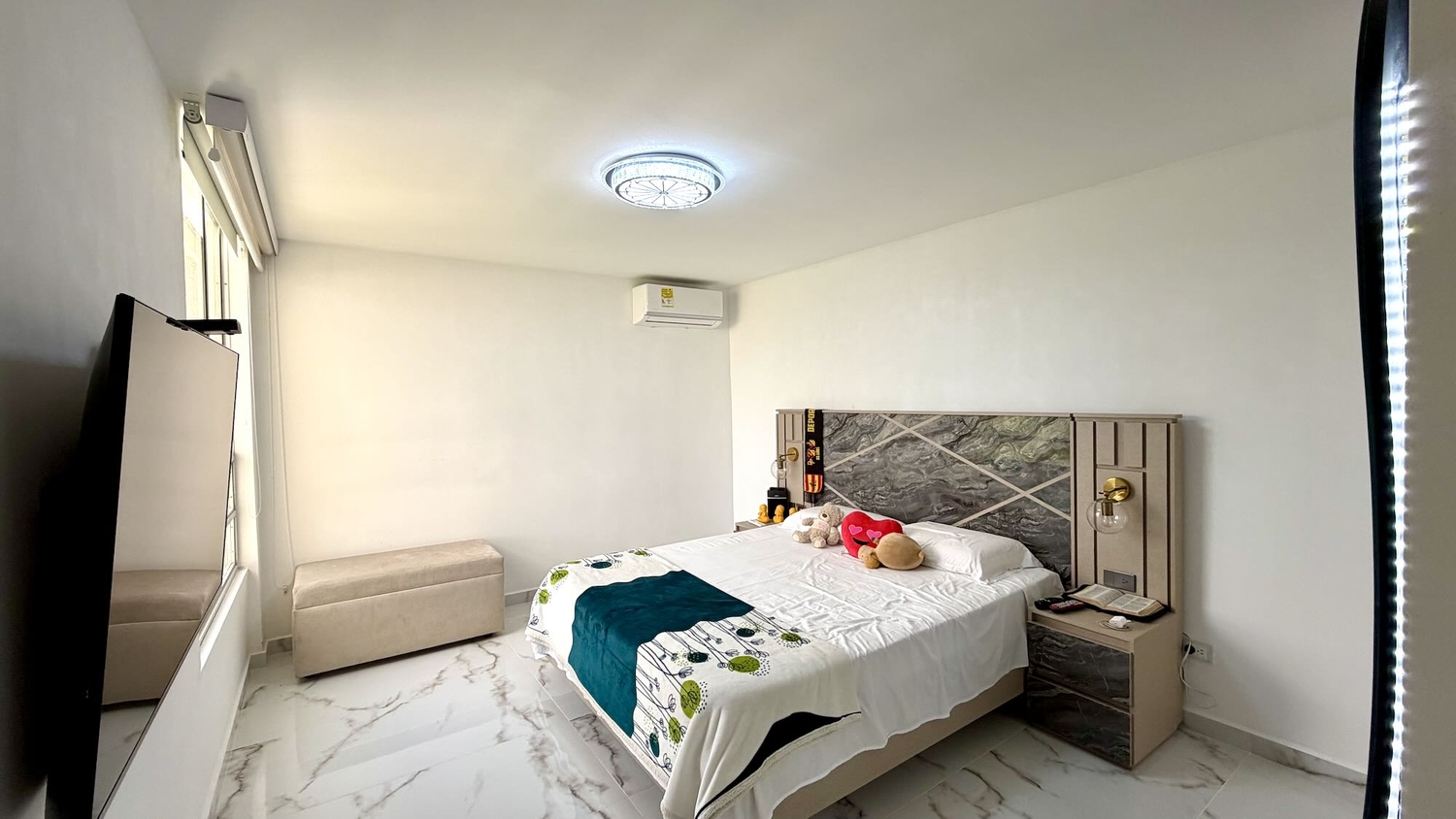 Alcoba principal con aire acondicionado, vestier y baño