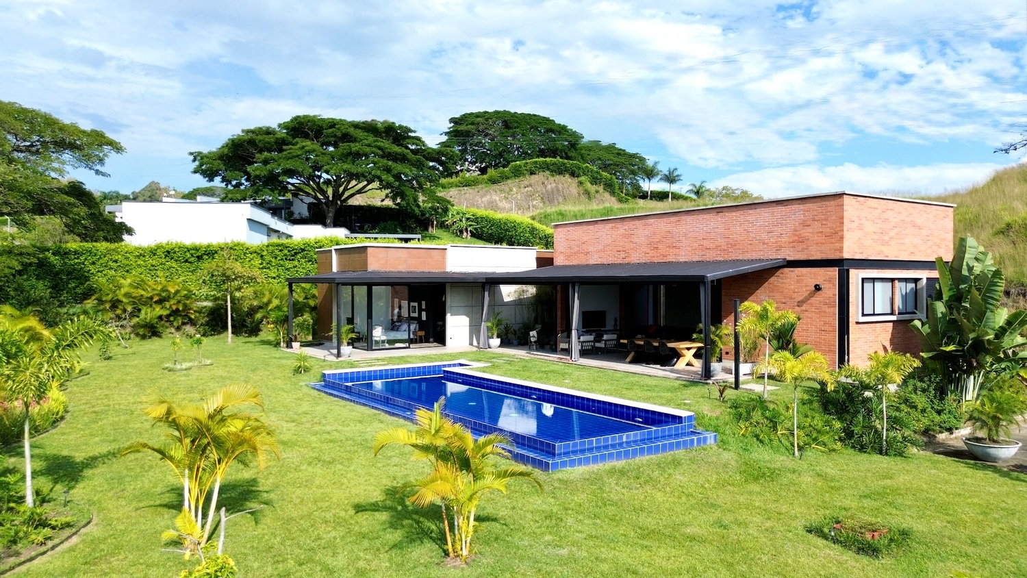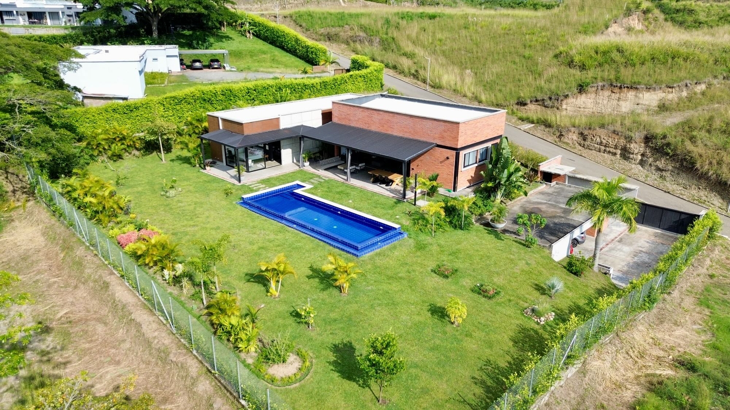 En Cerritos se encuentra esta extraordinaria casa de un solo nivel con una piscina de horizonte infinito que se funde sobre una vista al Valle de Risaralda, la cual cuenta con un estilo contemporáneo que sobresale por su elegantes acabados, distribución e iluminación. La propiedad se rodea de amplia zona verde y un entorno privada y acogedor.