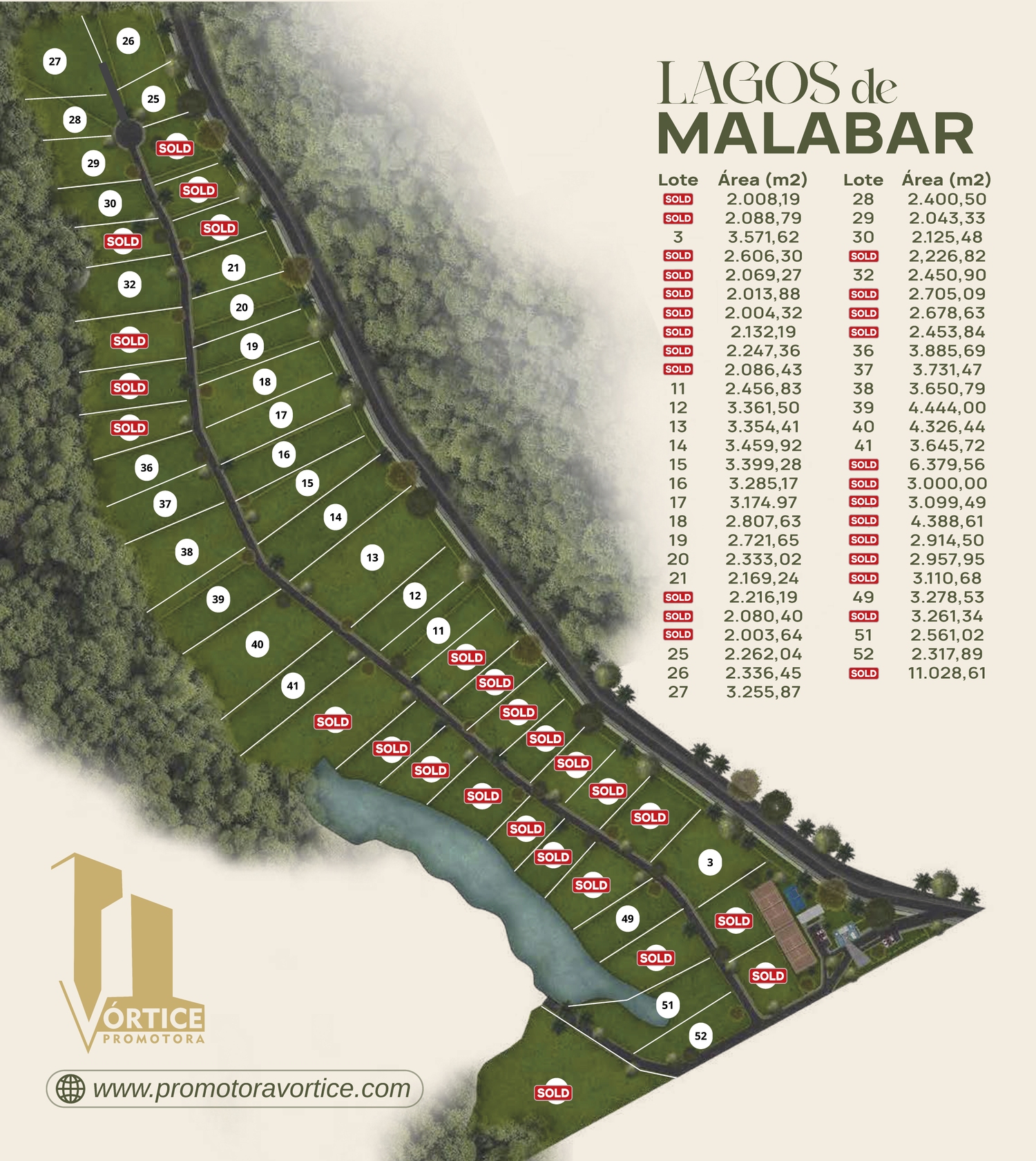 Lagos de Malabar un proyecto único ubicado en Malabar que sorprende por su extraordinario urbanismo enfocado en brindarle un experiencia memorable desde su ingreso por la majestuosa portería, transitando por sus amplias vías internas hasta llegar al club house donde contaremos con salón social, cancha de pádel, cancha de tenis y parque infantil.